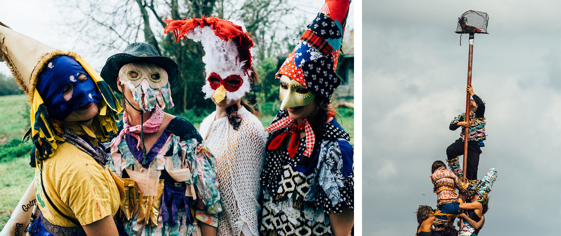 At the mist-shrouded crack of dawn during my first courir a few years ago, I realized I had arrived to this hamlet just outside of Eunice woefully underprepared. Not because I wasn’t wildly ready to chase after live chickens and crack open an early morning beer (I was!), but because my costuming left a lot to be desired. I kind of felt like I was wearing sweatpants to a cocktail party; one glance around at the elaborate, glorious outfits of my fellow runners and my own attempt at masking seemed downright sheepish.