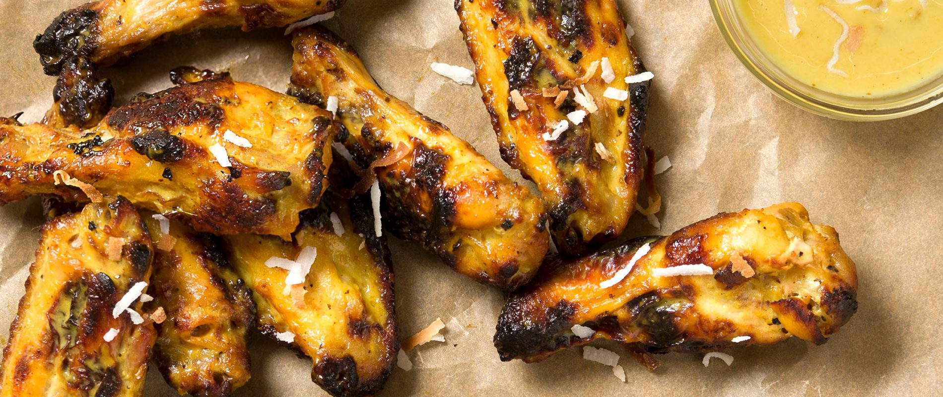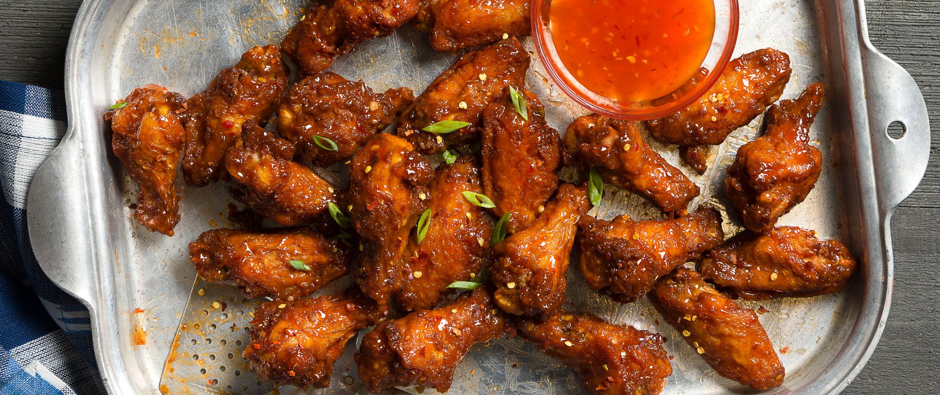 Football means food, and wings are a classic. I like bone-in wings rather than boneless, which are usually just chicken breast meat or tenders. Traditional wings are plain fried, with no breading or batter, and that’s what we serve at Rouses on our hot bar during tailgate season.