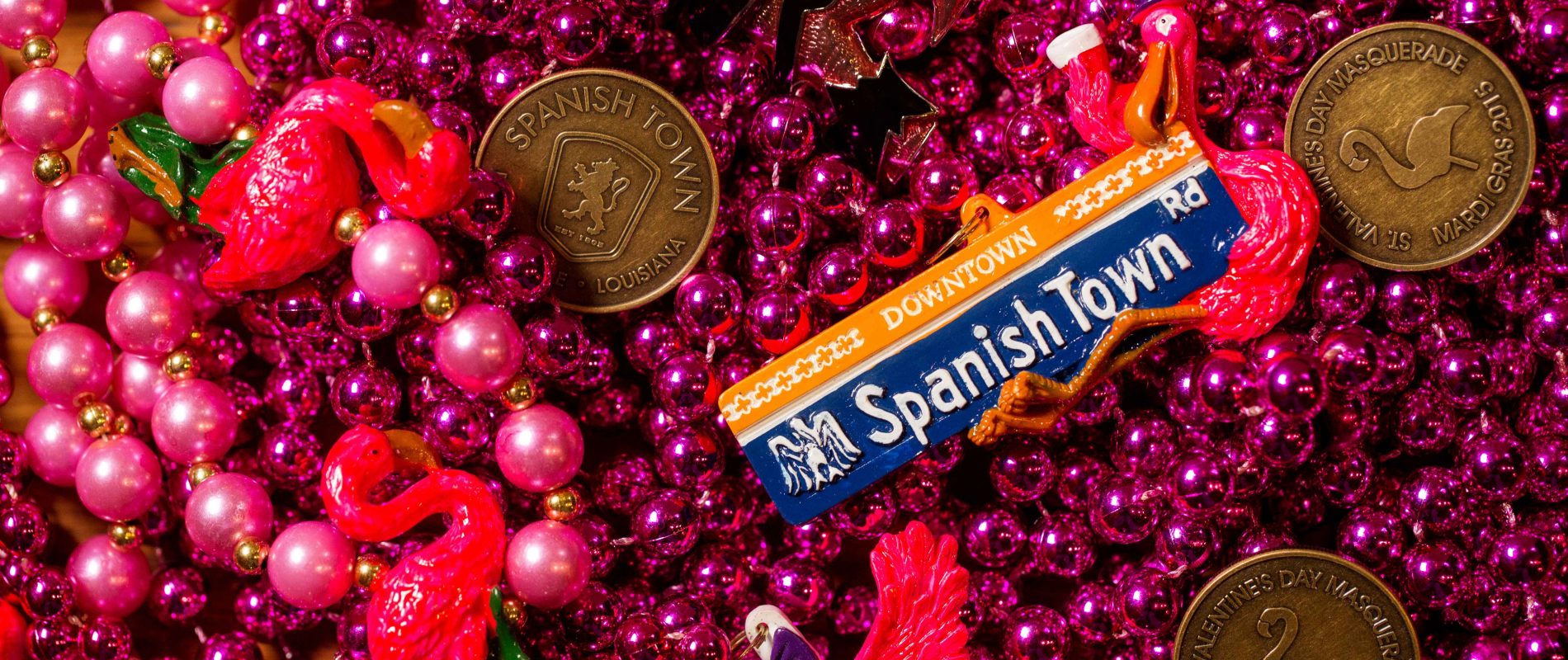 If that choice seems questionable to you, let me remind you, it is well in keeping with this parade’s colorful history and the mantra of its thoroughly pink-flamingoed community: “Bad taste is better than no taste at all.” The parade is best known for its rowdy political commentary and off-color humor (e.g., “FEMAture Evacuation” in 2006). Where the krewes of New Orleans shape and measure the social strata of that city, Spanish Town — the largest Mardi Gras parade in Baton Rouge — bills itself as the “people’s parade,” and its krewes are more inclined to ridicule than respect those who would claim a pedestal. Spanish Town crawls annually along a skyline of shotgun homes and hipster housing, with the state capitol looming above. This year the parade rolls on Saturday, February 10 at noon, beginning on its namesake road and inch-worming across downtown before ending on Lafayette and Main.